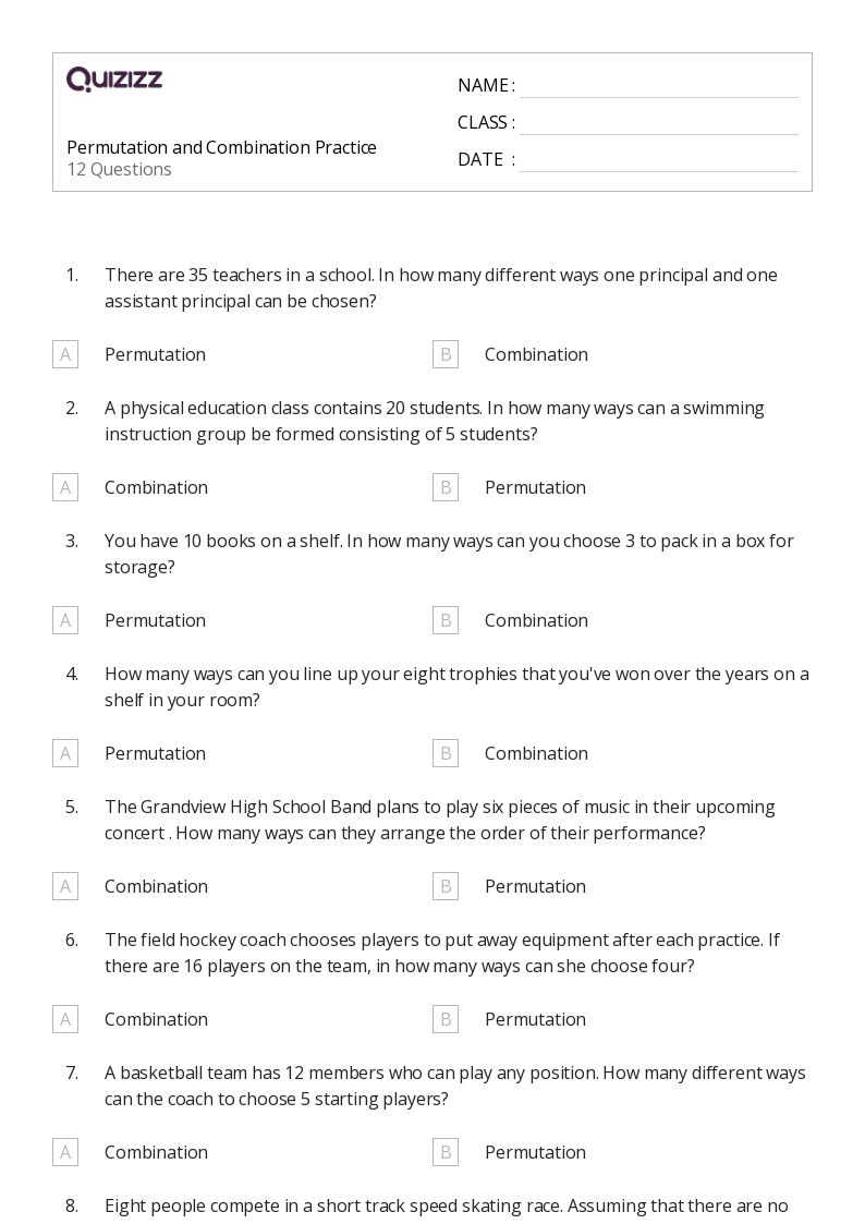 Up to 24% cash back permuations vs. Practice calculating and solving problems involving combinations and permutations with this worksheet. A worksheet with 20 questions on permutations and combinations, with answers and explanations. In these worksheets, your students will solve permutations.